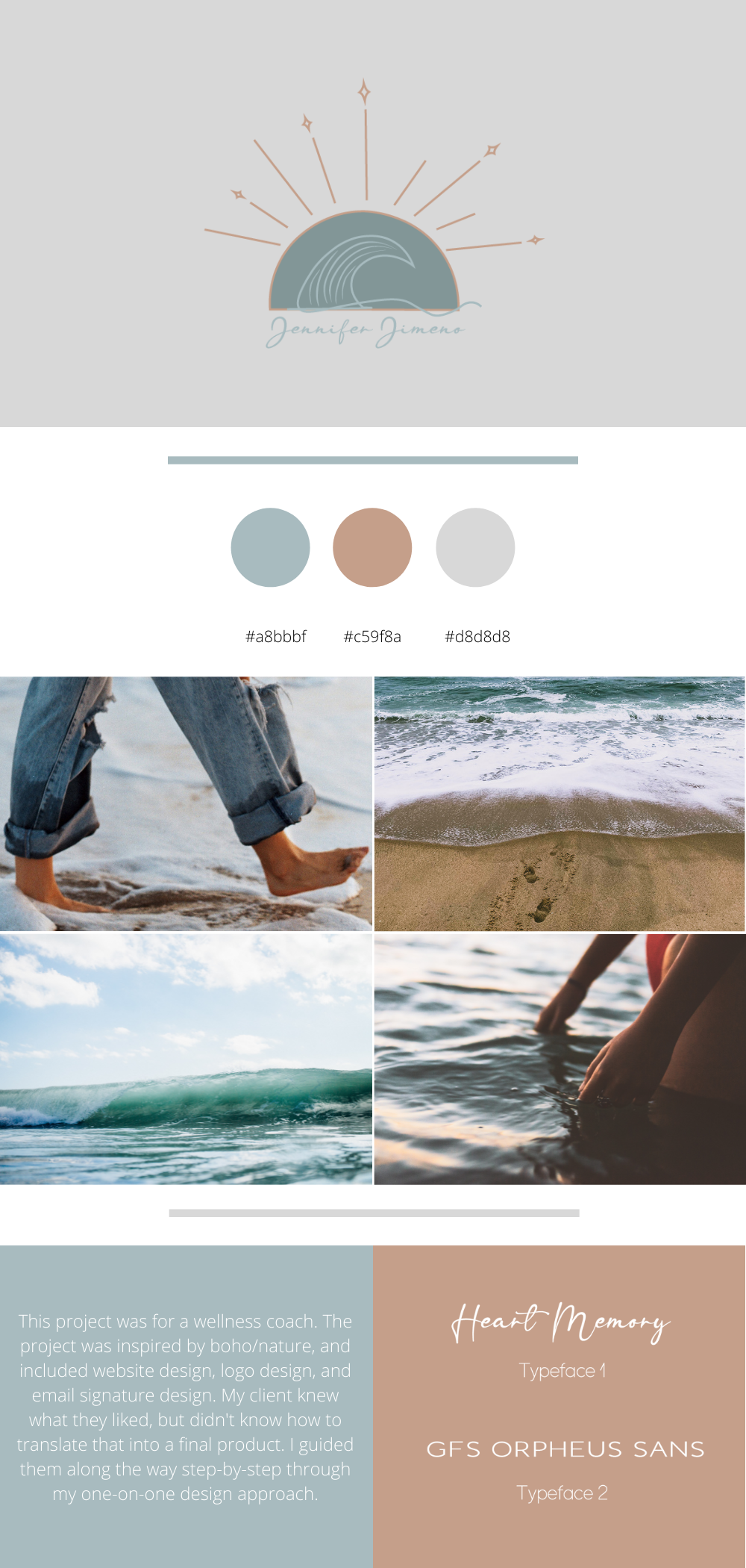 This project was for a wellness coach. My client was very involved in the design process of their website, which was created through Bluehost. I designed their website, logo, and email signature with boho/nature inspiration in mind. My client knew what they liked, but didn’t know how to translate that into a final product. I guided them along the way step-by-step through my one-on-one design approach.
