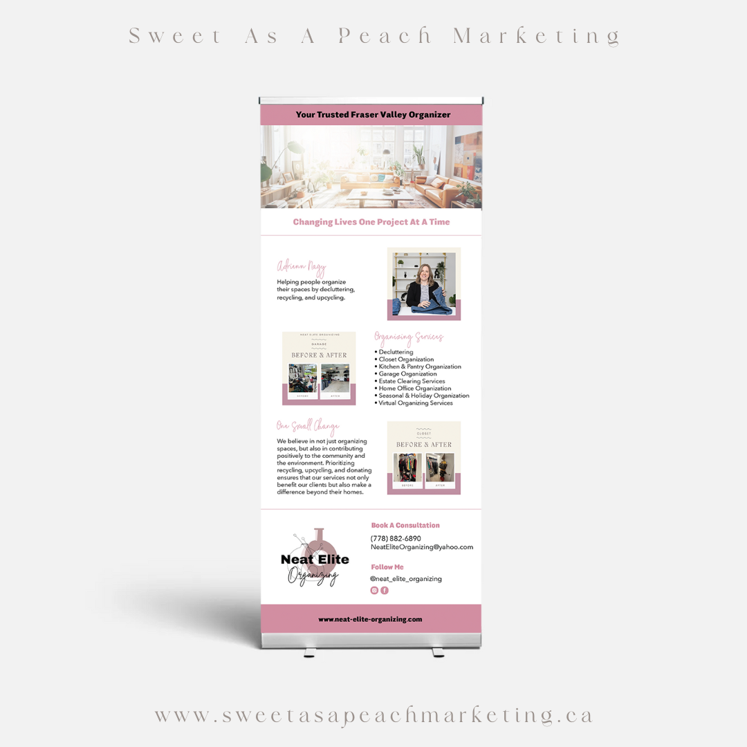 Neat Elite Organizing Print Design LEARN MORE This project was for a home organizer. I designed a custom trade show banner for an event my client was attending. Other Projects BOOK A CONSULTATION